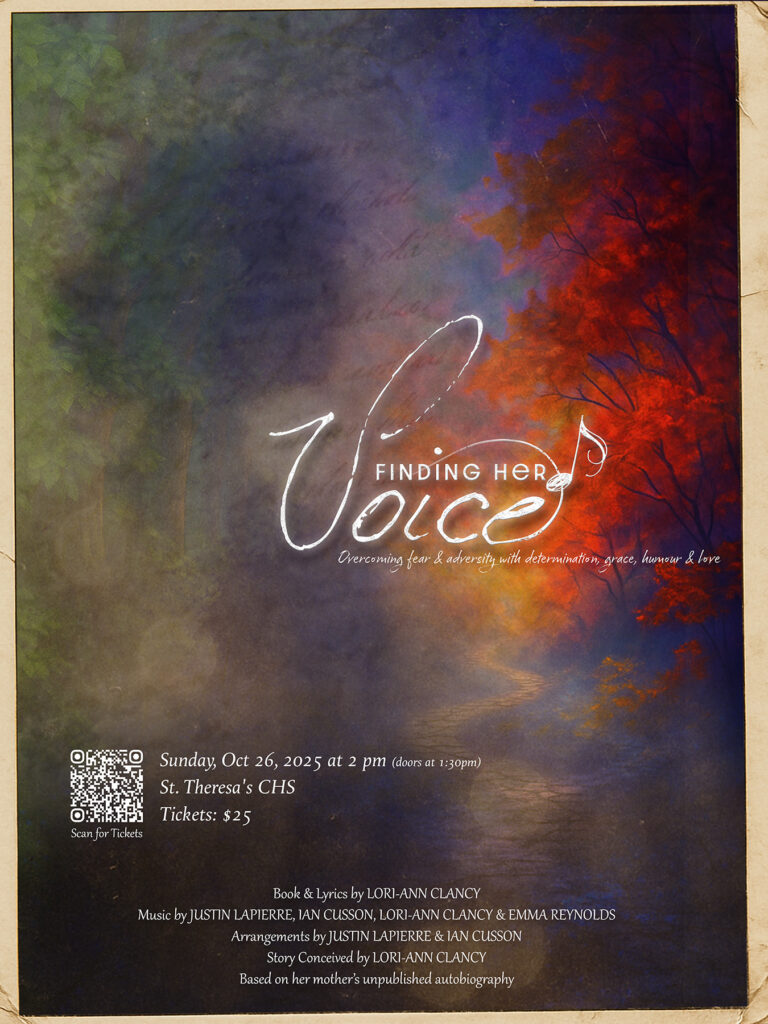 FINDING HER VOICE is a full-length, two act musical written by GBMTC’s President & Founder Lori-Ann Clancy. It is a story based on her mother’s unpublished autobiography entitled “My Life’s Journey”. This musical turns a lens to abuse, family hood in its many shapes and sizes, betrayal and dementia. Her mother was an incredibly strong woman who dealt with many adversities in life by leading a courageous and inspiring life.